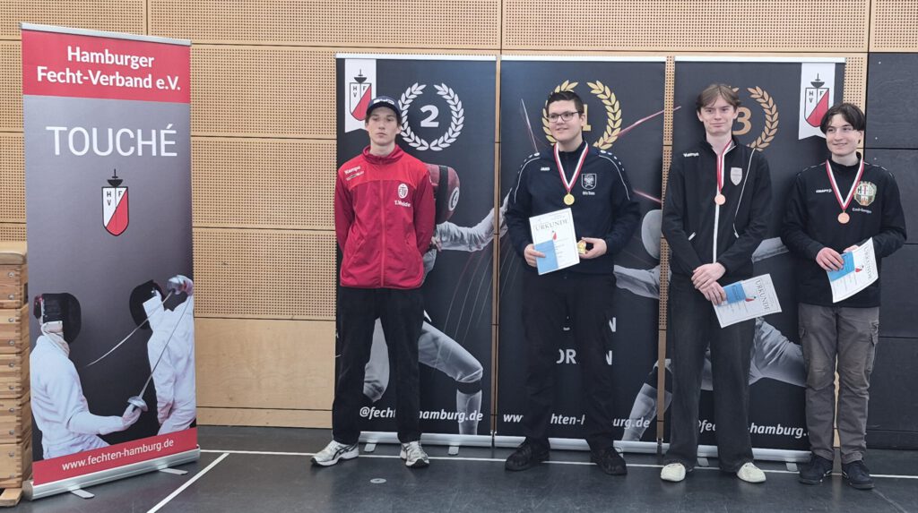 Am 29.3.2026 ging es erneut für zwei FCLer nach Hamburg. Dieses Mal standen die offenen Hamburger U20 Landesmeisterschaften in allen Waffen an. Für den FC Lütjensee kreuzten Flynn Jonathan Beu und Anastasia Winternheimer ihre Säbelklingen.